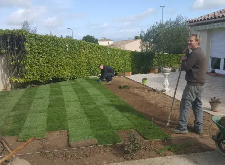 Renov’ Jardin, spécialiste de la pose de gazon synthétique, accompagne particuliers et professionnels dans la création et l’entretien de jardins, l’installation d’arrosages automatiques, l’aménagement de terrasses, abords de piscines, rocailles, bassins, boulodromes, ainsi que les travaux de maçonnerie paysagère, clôtures et parkings. À votre service à Carcassonne, Villemoustaussou, Trèbes, Palaja, Cazilhac, Pennautier, Verzeille, Laure-Minervois, Montréal et Villegailhenc.
